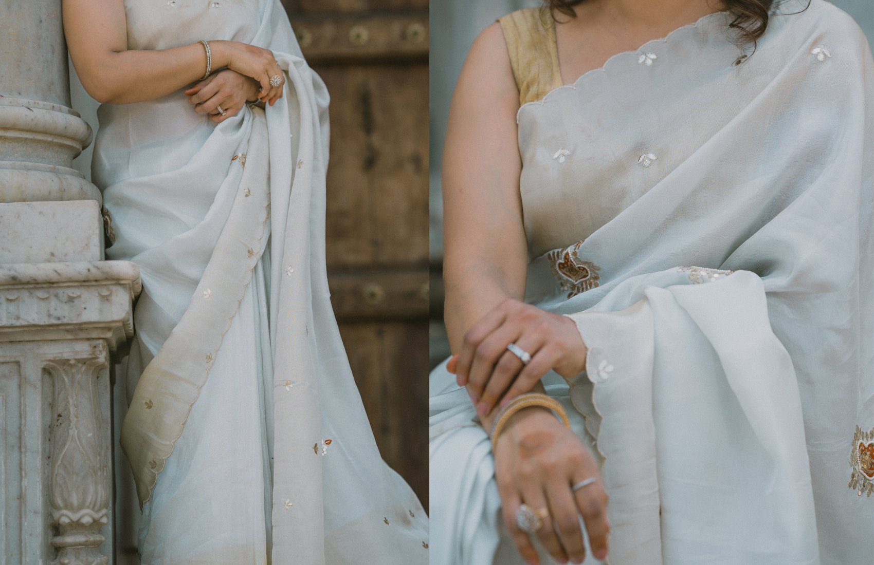 In the heart of Jaipur, where vibrant colors and centuries-old craft traditions breathe life into every corner, our founders grew up surrounded by stories woven in chiffon, georgette, silk, zari, and hand-spun cotton. Their family celebrated every occasion with the grace of a saree, their earliest memories are of their mother draping carefully folding heirloom Bandhej pieces.